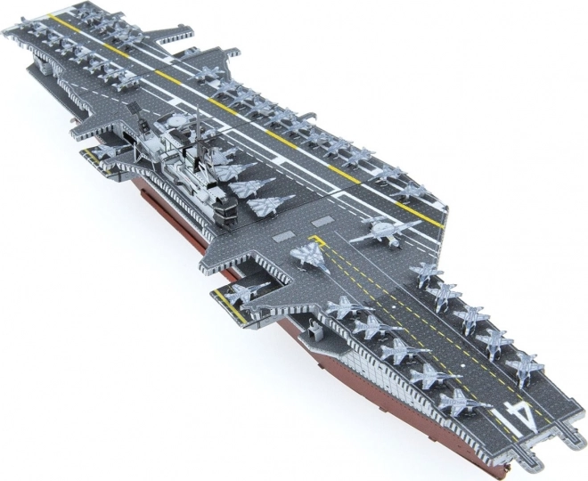 Gotowy model lotniskowca z miniaturowymi samolotami na pokładzie doskonale sprawdzi się jako dekoracja i kolekcjonerski eksponat.