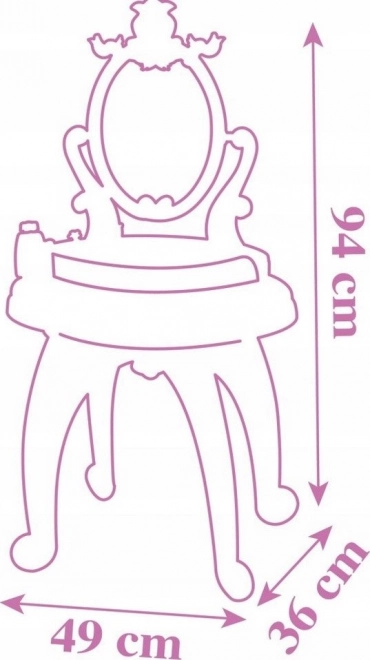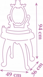 Regulowane lusterko można pochylić do wzrostu dziecka. Umożliwia wygodne malowanie, czesanie i księżniczkowe przebieranki.