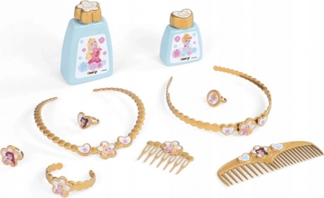 W zestawie znajduje się ponad 10 tematycznych akcesoriów: stołeczek, flakoniki, duży grzebień oraz ozdoby do noszenia (naszyjnik, bransoletka, pierścionki, spinka, tiara/pasek do włosów). Trzy zintegrowane szufladki zapewniają przejrzyste przechowywanie skarbów i akcesoriów. Wysoka jakość marki SMOBY spełnia rygorystyczne standardy bezpieczeństwa i jest wyprodukowana we Francji.