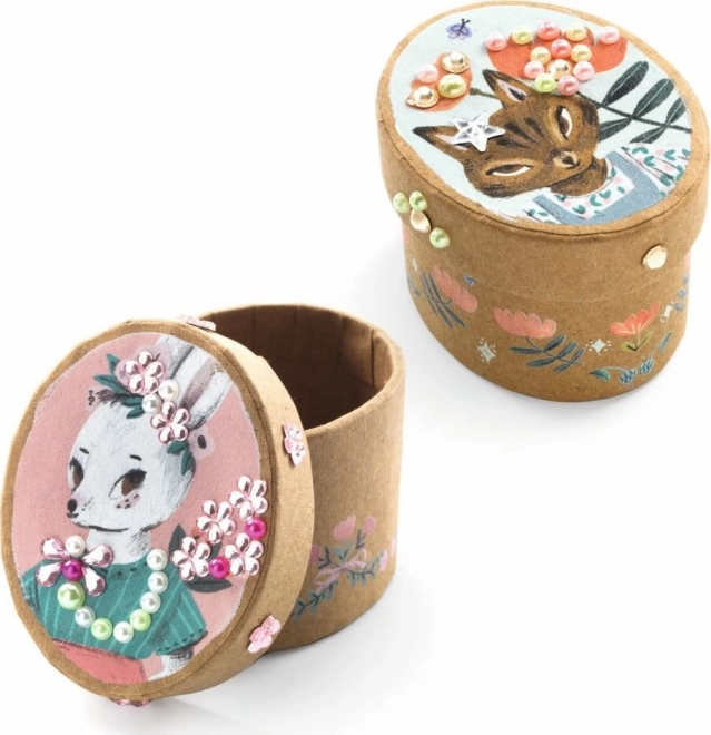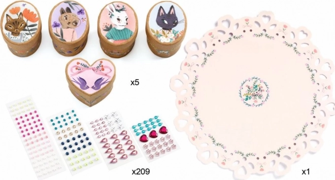Odkryj radość tworzenia z tym zestawem kreatywnym od Djeco, który pozwala na stworzenie 5 unikalnych mini pudełek ozdobionych według Twojej fantazji.