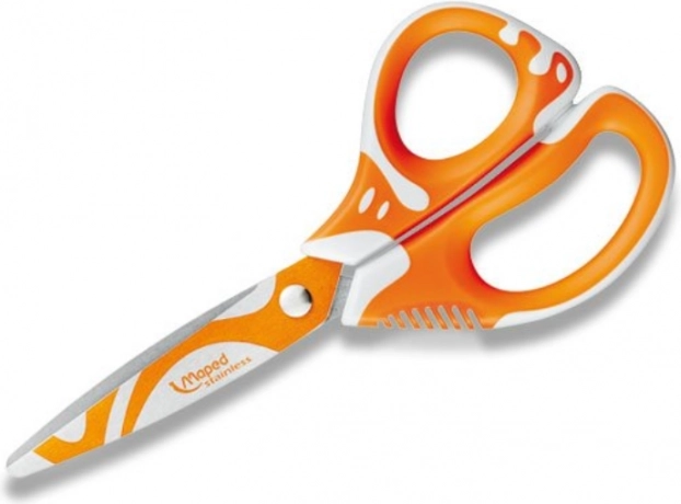 Nożyczki MAPED Zenoa Fit 13 cm to świetny wybór do szkoły, domu i kreatywnej pracowni. Dzięki ergonomicznemu kształtowi oraz miękkim, symetrycznym uchwytom wygodnie leżą w prawej i lewej dłoni. Zaokrąglone końcówki zwiększają bezpieczeństwo pracy, co docenią zwłaszcza dzieci i początkujący.