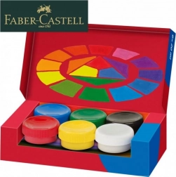 Zestaw farb temperowych Faber-Castell zawiera 6 intensywnie pigmentowanych kolorów idealnych dla różnych powierzchni, ułożonych w praktycznych pojemnikach z zakręcanym wieczkiem.