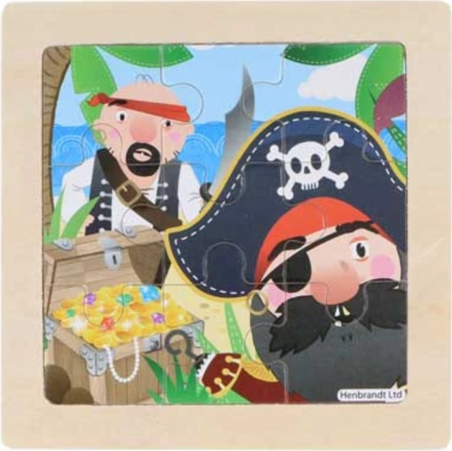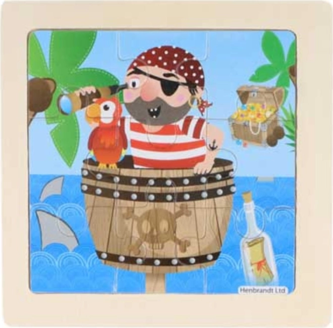 Odkryj zabawne drewniane puzzle z motywem pirata składające się z 9 elementów, idealne dla małych dzieci. Elementy układa się na solidnej drewnianej podstawie z frezowaną krawędzią, co zapewnia łatwiejszą manipulację. Układanie rozwija małą motorykę, myślenie logiczne i wyobraźnię.