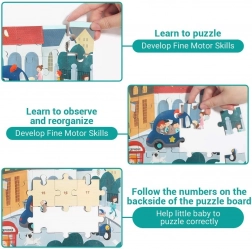 Każdy element ma na rewersie numer – dzięki temu dzieci szybciej się orientują, ćwiczą logikę, myślenie matematyczne i cierpliwość. Idealne na pierwsze puzzle.