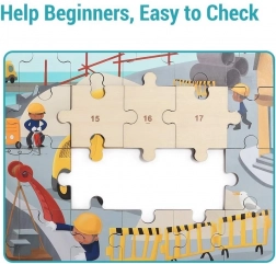 Elementy są ponumerowane na odwrocie dla łatwej orientacji. Wspierają małą motorykę, cierpliwość oraz rozwój myślenia matematycznego i logicznego.