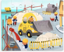 Ułóż obrazek, a potem baw się do woli plastikowym buldożerem. Dzieci ćwiczą logikę podczas układania i wyobraźnię podczas jazdy pojazdem.