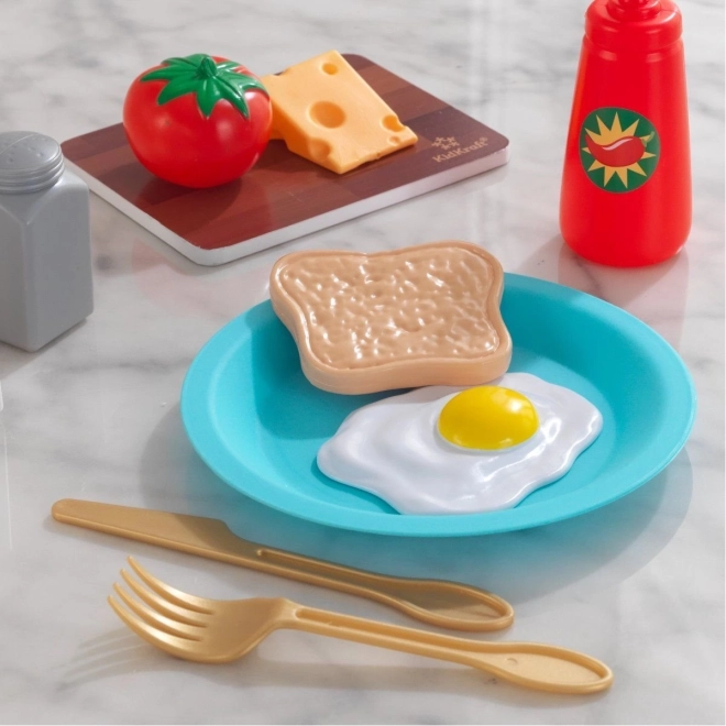 Z zestawem KidKraft Create & Cook: tost z awokado dzieci przygotują swoją ulubioną, zdrową śniadaniową przekąskę w formie zabawy. Elementy łączą się za pomocą rzepów, co umożliwia realistyczne krojenie i układanie warstw. Pozwól małym kucharzom łączyć awokado, jajko, pomidora, ser, pikantny sos, przyprawy i cytrynę – albo wybrać słodnią wersję z masłem orzechowym i miodem. Idealny do rozwijania motoryki małej, kreatywności i zabawy w odgrywanie ról. Odpowiednie od 3 lat.