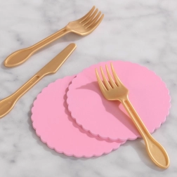 Kawałki szarlotki, talerzyki, sztućce oraz „lody” dla autentycznego podawania i dzielenia się smakołykami.