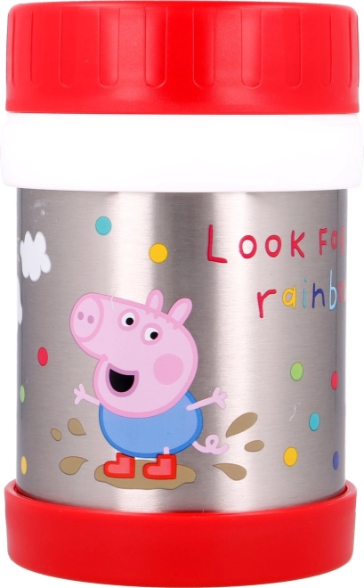 Praktyczny nierdziany termos na jedzenie z wesołym motywem PEPA PIG jest idealny do zup, makaronów, dań warzywnych i mięsnych oraz ciepłego mleka. Dzięki solidnej konstrukcji pomaga utrzymać temperaturę potraw przez kilka godzin, czy to w szkole, na wycieczce, czy na placu zabaw.