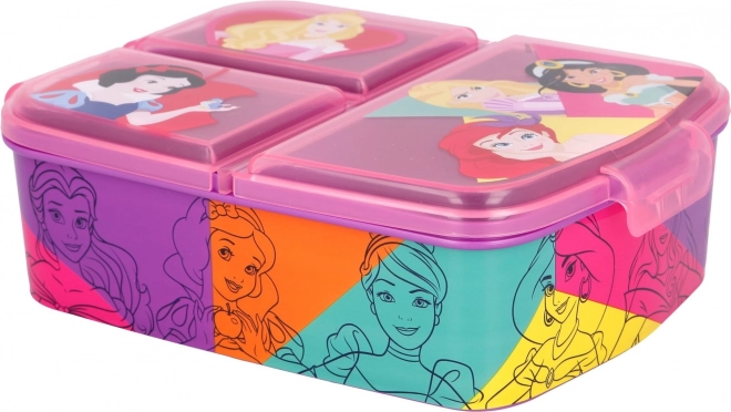 Praktyczne pudełko śniadaniowe z motywem DISNEY Księżniczki oferuje trzy oddzielne przegródki do przejrzystego przechowywania jedzenia. Wykonane z wytrzymałego materiału, nie zawiera BPA i dzięki oficjalnej licencji ucieszy każdą małą księżniczkę. Idealne do szkoły, na plac zabaw i na wycieczki.