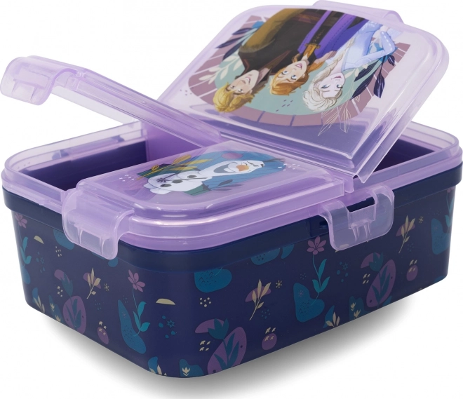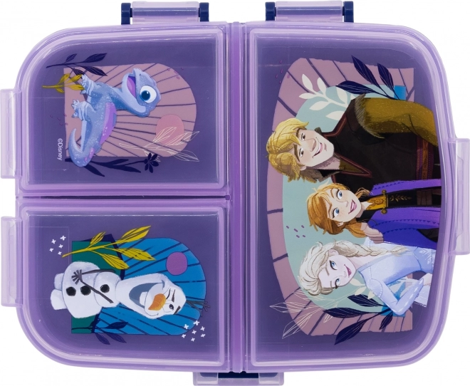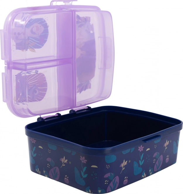 Oryginalny i praktyczny lunchbox z wieloma przegródkami jest idealny dla dzieci, które mogą go zabrać do szkoły, na plac zabaw lub na wycieczkę. Wykonany z trwałego materiału, wytrzyma codzienne upadki i uderzenia. Pudełko ma dwa poziomy - w dolnej części znajduje się jedna duża przegródka, a górna część jest podzielona na trzy osobno zamykane przegródki.
