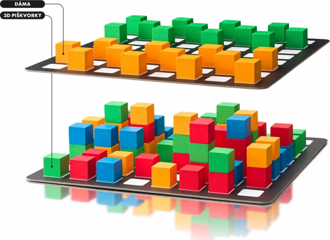 Odkryj zupełnie nowy wymiar gier towarzyskich z drewnianymi sześcianami 3D. Zestaw zawiera następujące gry: