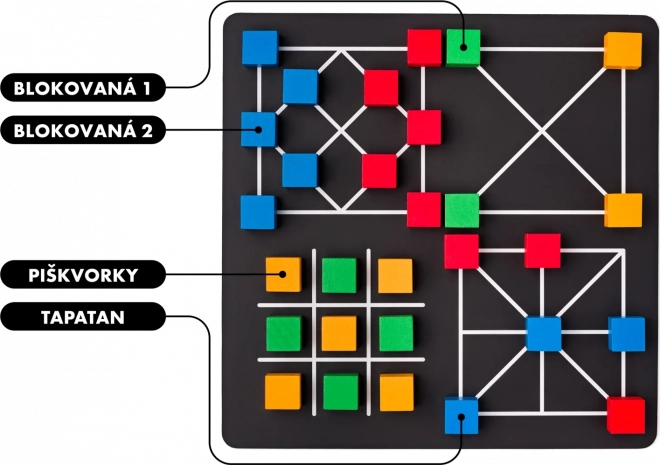 - Kółko i krzyżyk Tapatan: Strategiczna gra dla dwóch graczy. Celem jest ułożenie rzędu z 3 kostek w jednym kolorze. Gracze na zmianę kładą i przesuwają kostki.