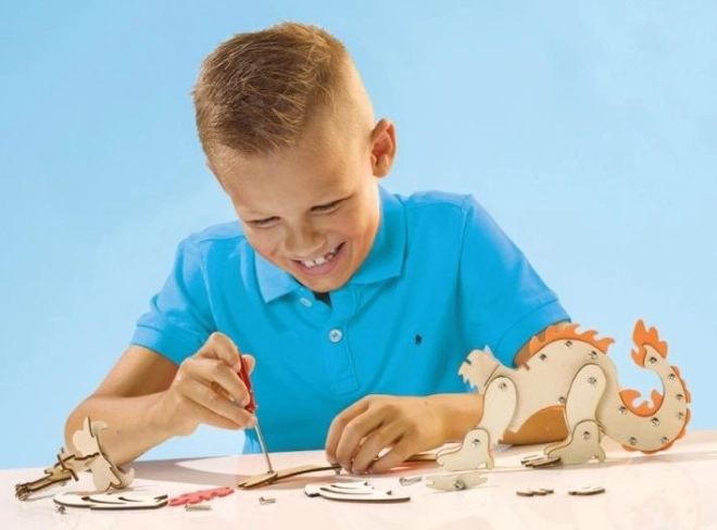Zbuduj własnego drewnianego smoka z kreatywnym zestawem konstrukcyjnym SES Creative. Zawiera wszystko, czego potrzebujesz – od elementów ze sklejki po narzędzia i naklejki. Idealny do rozwijania małej motoryki, kreatywności i myślenia technicznego u dzieci od 6 lat. Dzięki przejrzystej instrukcji montaż jest łatwy i przyjemny. Gotowego smoka możesz dodatkowo ozdobić naklejkami, tworząc oryginalną zabawkę według własnej wyobraźni.