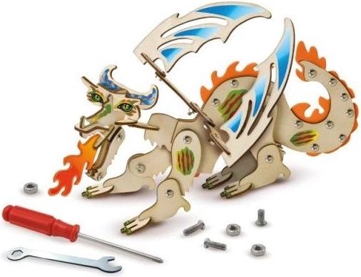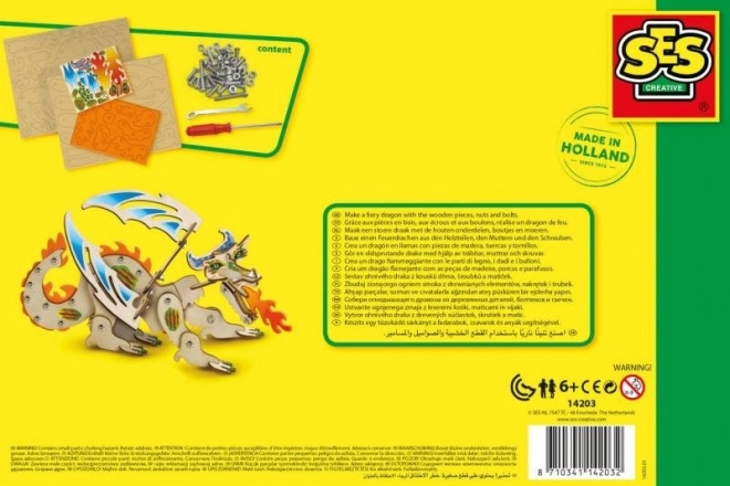 Wspieraj zręczność i wyobraźnię dziecka z zestawem konstrukcyjnym SES Creative do tworzenia drewnianego smoka. W opakowaniu znajdziesz elementy ze sklejki, śruby i nakrętki, praktyczne narzędzia oraz piankowe dodatki dla bezpiecznego i łatwego składania. Krok po kroku według instrukcji dzieci zbudują własnego smoka, a na koniec dopracują go naklejkami.