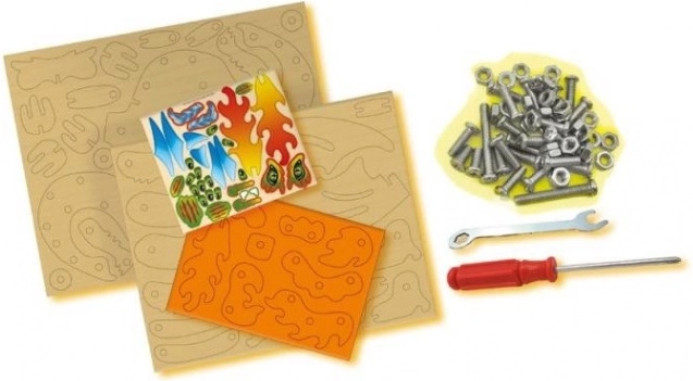 - Elementy ze sklejki, śruby i nakrętki, śrubokręt, klucz, elementy piankowe, arkusz z naklejkami, instrukcja