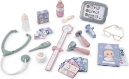 26 akcesoriów, w tym stetoskop, strzykawka, termometr, buteleczka i pieluszka, wspiera wyobraźnię, empatię i motorykę małą dzieci.
