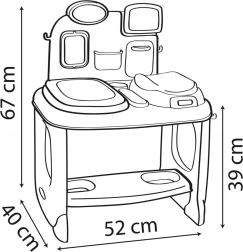 Zestaw dopracowany w szczegółach: stół do badania z trwałą grafiką IML, dwustronny obrotowy wyświetlacz do badania wzroku i pulsu, praktyczne półki, haczyki i wysuwana szuflada, które pomagają utrzymać porządek w trakcie zabawy. Wysoka jakość marki SMOBY gwarantuje bezpieczeństwo i długą żywotność.