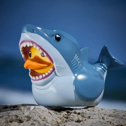 Zabawne ujęcie kaczki z motywem Bruca ze Szczęk oferuje kolekcjonerom unikalny element.