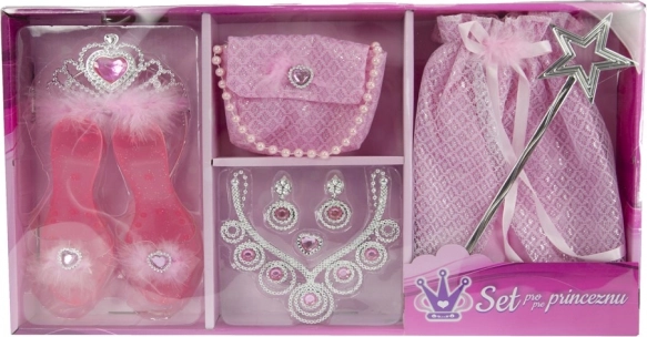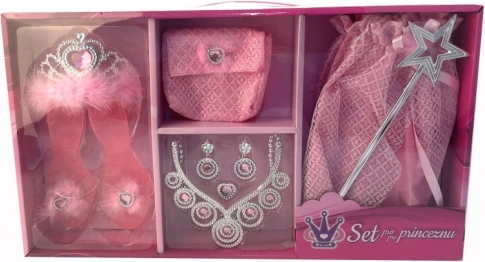 Wejdź do bajkowego świata z magicznym zestawem dla małych księżniczek! Zawiera spódniczkę, pantofelki, koronę, torebkę, czarodziejską różdżkę i biżuterię – wszystko do natychmiastowej przemiany w księżniczkę i godzin kreatywnej zabawy.