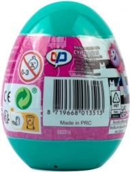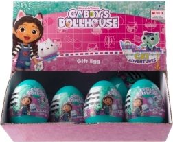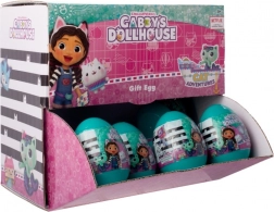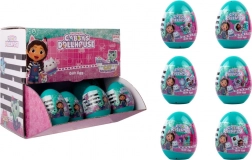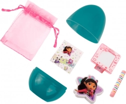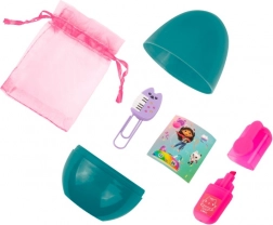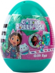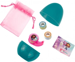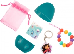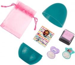 Turkusowe jajko skrywa tematyczną niespodziankę z bajkowego świata Gabby’s Dollhouse. Dzieci ucieszą urocze naklejki, brelok do kluczy, bransoletka, mała stempelka czy taśmy dekoracyjne oraz różowy woreczek na skarby. Wszystko utrzymane w wesołych barwach, gotowe do zabawy i tworzenia.