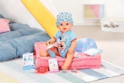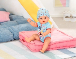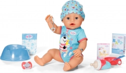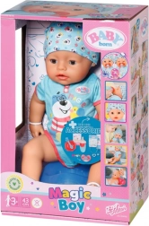 Odkryj realistyczną lalkę BABY born chłopczyk 43 cm z magicznym smoczkiem, która otwiera i zamyka oczy po przekręceniu smoczka w dowolnej pozycji. Oferuje 10 realistycznych funkcji bez baterii – pije wodę, je kaszkę, siusia do pieluszki lub na nocnik, roni łezki i potrafi też zrobić kupkę. Miękkie ciałko Soft Touch, łatwo ruchome kończyny i bogate akcesoria zapewnią godziny kreatywnej zabawy i rozwój empatii.