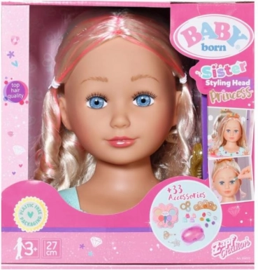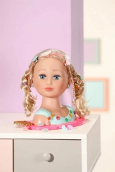 Zamień każde popołudnie w bajkowy salon piękności. Głowa do czesania BABY born siostrzyczka z wysokiej jakości blond włosami łatwo układa się w fale, warkoczyki, kucyki i eleganckie koki. Dzięki bogatemu zestawowi akcesoriów i bezpiecznemu makijażowi dzieci stworzą niezliczone stylizacje – od księżniczkowych po nowoczesne.