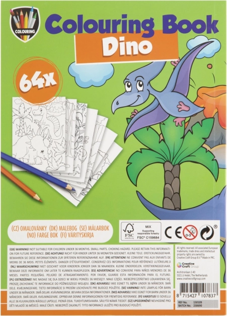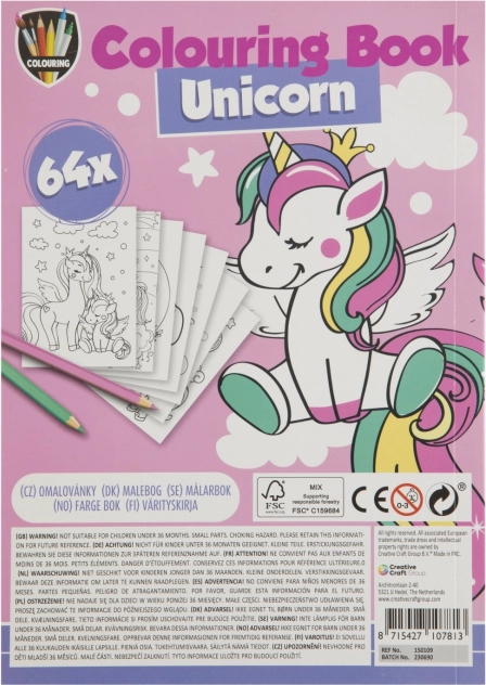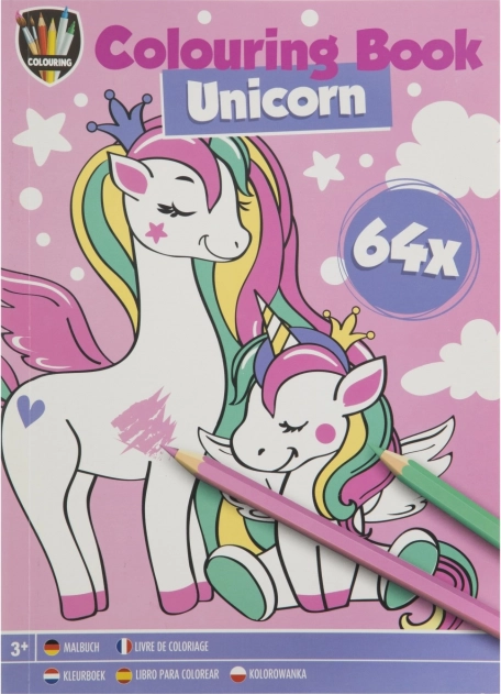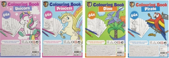 Książka do kolorowania A5 z 64 kreatywnymi obrazkami oferuje świetną zabawę dla dzieci. Motywy takie jak Jednorożec, Księżniczki, Dino i Piraci inspirują małych artystów.