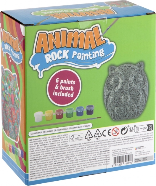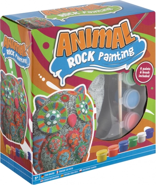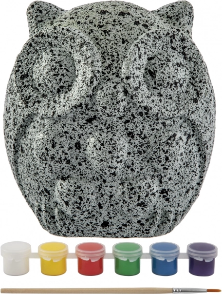 Zestaw zawiera kamień w kształcie sowy, 6 kolorów i pędzelek – bez dodatkowych zakupów możesz od razu zacząć tworzyć.