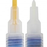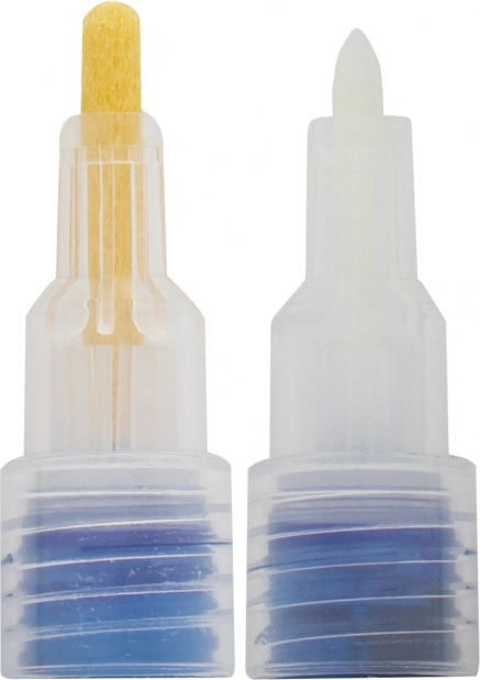 Cienka końcówka jest idealna do detali, konturów i pisma, natomiast szersza łatwo wypełnia większe powierzchnie i zapewnia wyraźne krycie. Dla najlepszego efektu przed aplikacją oczyść powierzchnię, a nowe markery najpierw aktywuj i przetestuj na papierze.
