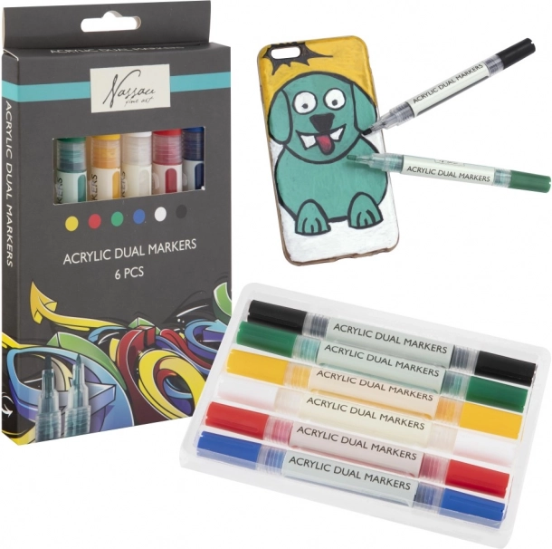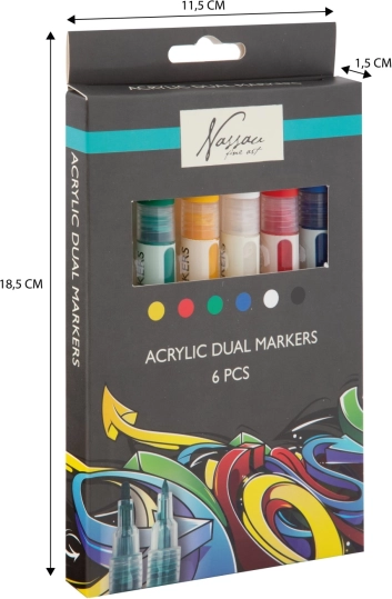 Ten praktyczny zestaw dwustronnych markerów akrylowych oferuje żywe, kryjące odcienie oraz wygodę dwóch końcówek w każdym markerze. Stworzysz nimi napisy, ilustracje, dekoracje i projekty DIY – od malowania na papierze i kartonie po zdobienie kamieni, drewna czy butów.