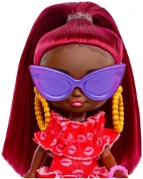 Czerwone falbany, fioletowe okulary i żółte kolczyki nadają lalce niepowtarzalny wygląd, który inspiruje do modowej zabawy.