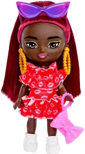 Ta mini lalka BARBIE z kolekcji Extra Mini Minis zachwyca jaskrawą stylizacją z czerwonymi falbanami, długimi rudymi włosami i wyrazistymi dodatkami, takimi jak fioletowe okulary przeciwsłoneczne, żółte kolczyki-koła i różowa torebka. Dzięki kompaktowemu rozmiarowi świetnie sprawdzi się w podróży i w dziecięcych pokojach.