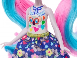 Lalka wyposażona jest w długie niebieskie włosy z różowymi pasemkami oraz kolorowe ubranie, które przykują uwagę każdego dziecka.