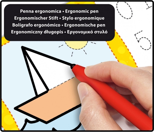 Pióro Montessori zostało opracowane na podstawie badań nad anatomią. Ma ergonomiczny chwyt ze specjalnymi wgłębieniami na palce, które wspierają prawidłowe trzymanie pióra. W zestawie znajduje się unikalne pióro, które świetnie sprawdza się również u dzieci piszących lewą ręką.