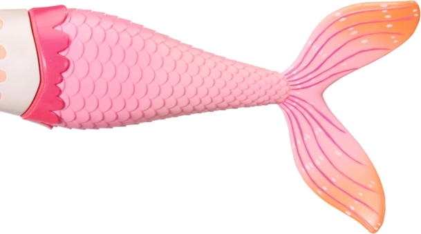 Różowo-pomarańczowy ogon z łuskami oraz delikatne zdobienia przyciągają uwagę dzieci od pierwszego spojrzenia i pobudzają fantazję.