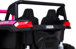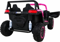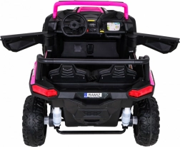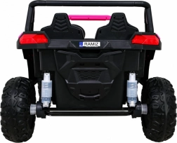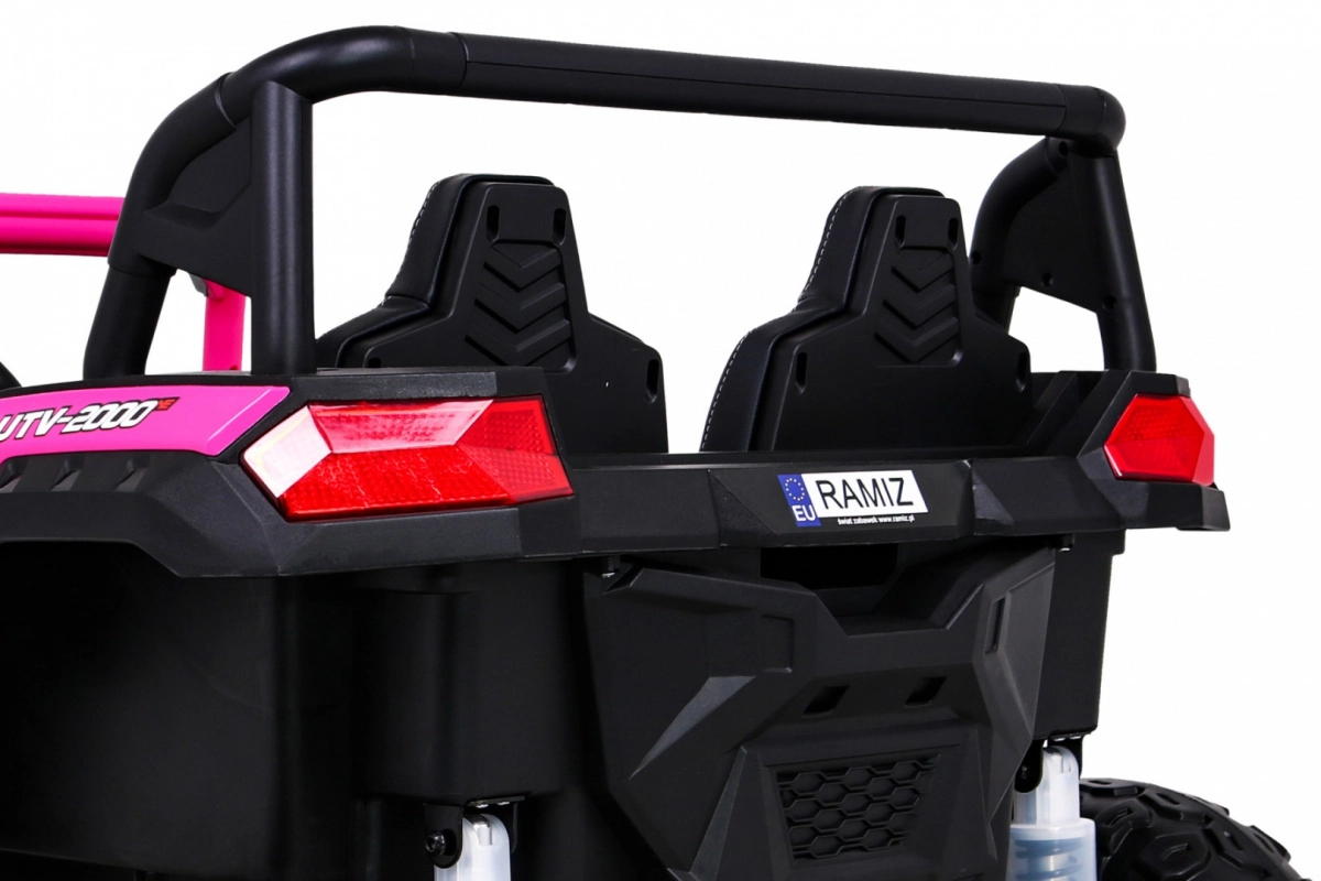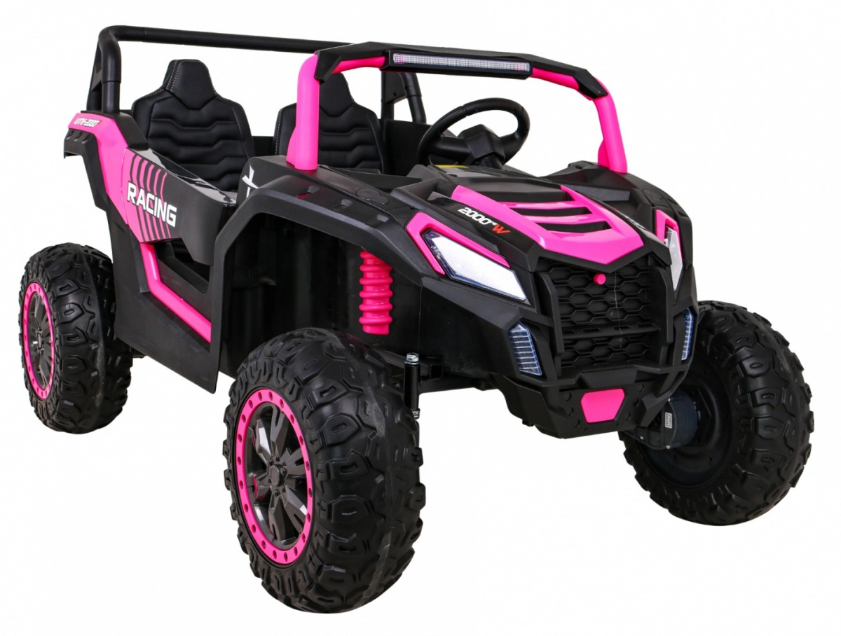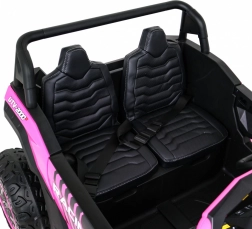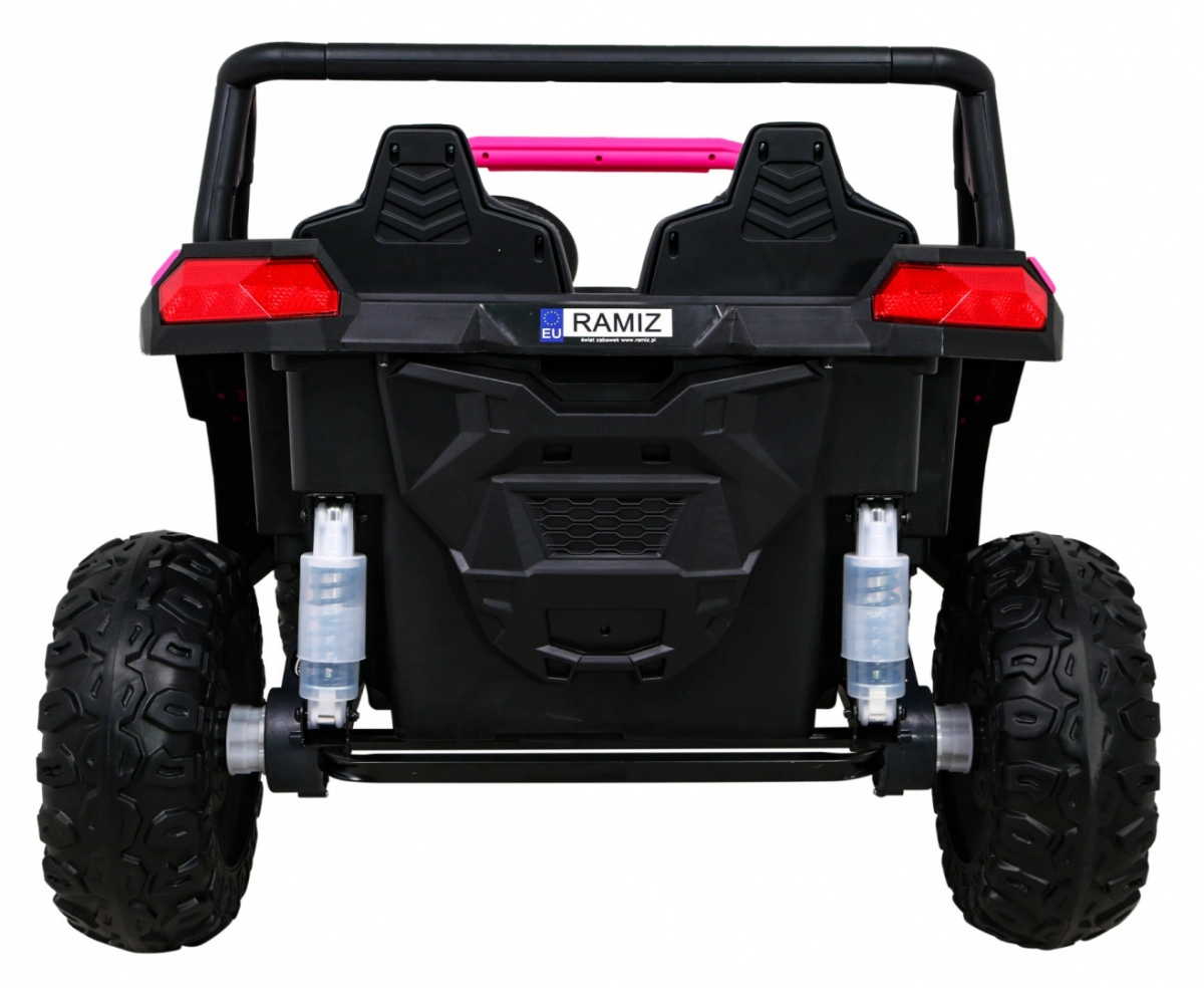 To terenowe elektryczne buggy stworzono do przygód we dwoje. Dzięki napędowi na wszystkie koła 4x4 i dużym kołom EVA z głębokim bieżnikiem radzi sobie na nierównym terenie i oferuje płynną jazdę. Wentylowane siedzisko z eko skóry z 3-stopniową regulacją przesuwu, pasy bezpieczeństwa oraz łagodny rozruch zapewniają komfort i bezpieczeństwo.