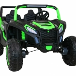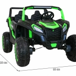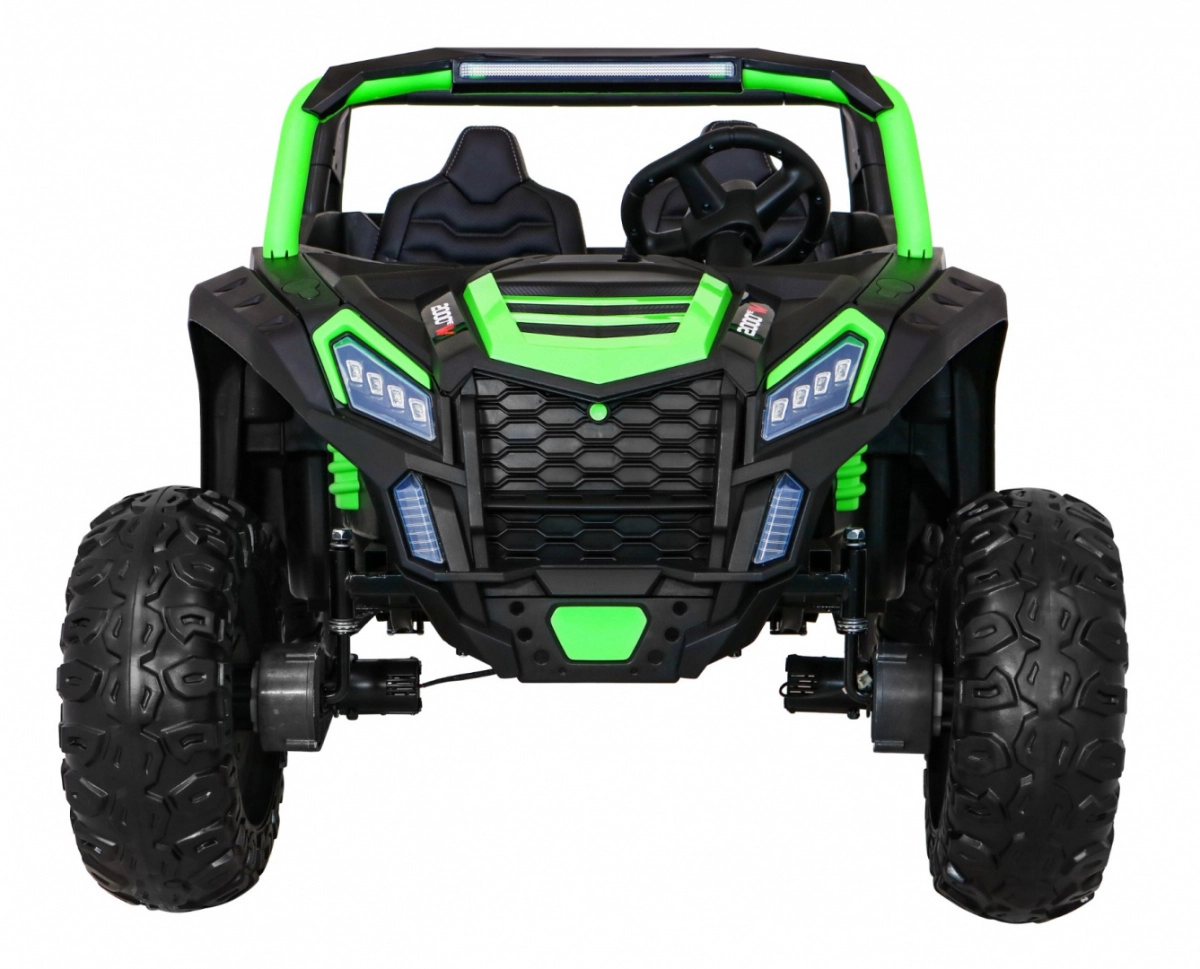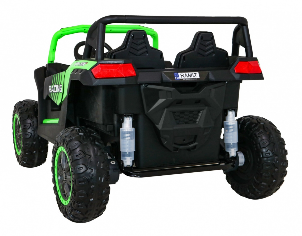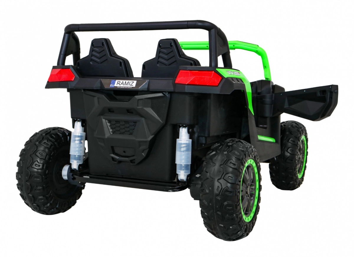 To solidne elektryczne buggy jest idealne dla rodzeństwa lub przyjaciół. Dwa wygodne siedzenia z perforowanej ekoskóry, trzystopniowa regulacja przesuwu siedziska i pasy bezpieczeństwa zapewniają komfort i ochronę. Dzięki gumowym kołom EVA 35×15 cm, tylnym amortyzatorom i prześwitowi 23 cm dzieci cieszą się płynną jazdą również poza utwardzonymi drogami.
