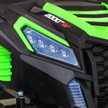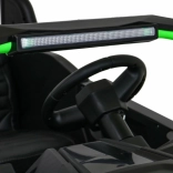 Oświetlenie LED z przodu i z tyłu z wyłącznikiem, realistyczne dźwięki silnika oraz panel audio MP3/USB/AUX/Bluetooth. Kierownica z wbudowanymi dźwiękami.