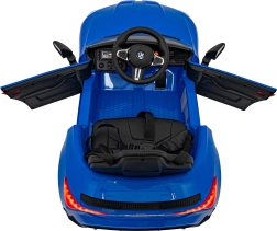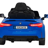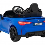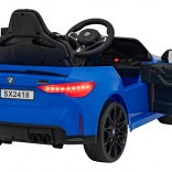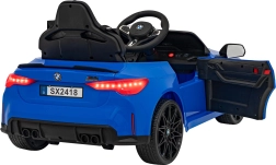 Stylowy dziecięcy samochodzik elektryczny BMW M4 w niebieskim kolorze oferuje realistyczną jazdę z dwoma silnikami 2×35 W, akumulatorem 12V/7Ah, otwieranymi drzwiami i światłami LED. Dzięki płynnemu startowi, piankowym kołom EVA oraz pilotowi 2,4 GHz z przyciskiem bezpieczeństwa STOP jazda jest wygodna i bezpieczna. Panel audio z Bluetooth, USB, MP3 i AUX ucieszy małych kierowców ulubioną muzyką.