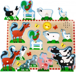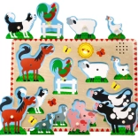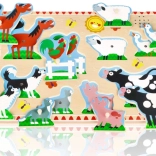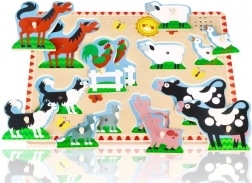 Zabawne i edukacyjne drewniane puzzle dla dzieci z motywem zwierząt gospodarskich. Dzięki kolorowym kawałkom i łatwemu uchwytowi dzieci uczą się rozpoznawać zwierzęta i rozwijają swoją drobną motorykę.