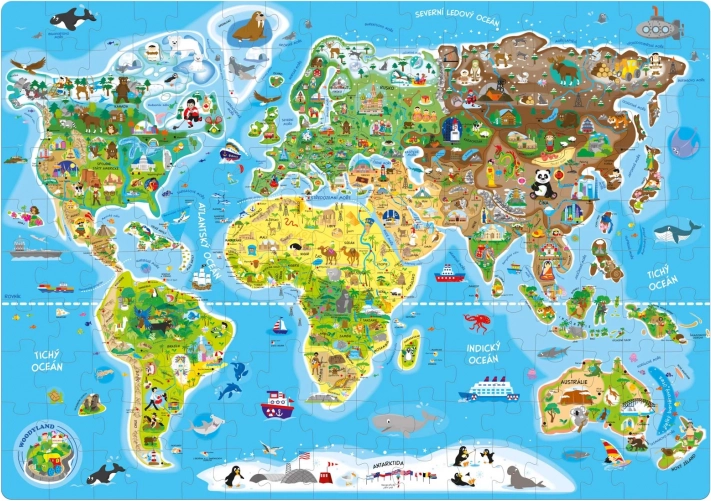 Odkrywaj świat w zaciszu domu z radosnymi puzzlami dla dzieci i dorosłych. Geograficzne puzzle z mapą świata oferują przegląd kontynentów, światowych zabytków oraz zwierząt według regionów. Doskonałe do zabawy i nauki, z ilustracjami polskiego artysty.