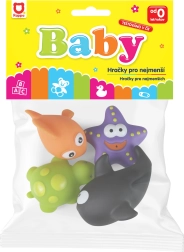 Możesz zwiększyć radość z każdej kąpieli dzięki tym pięknym morskim zwierzątkom. Te plastikowe zabawki w czterech wariantach – wieloryb, rozgwiazda, rybka i żółwik – zostały stworzone do beztroskiej zabawy w wodzie.