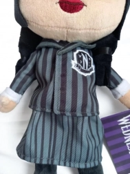 Odkryj urok ulubionego bohatera serialowego z naszą stylową pluszową lalką Wednesday Addams. Ta 32cm lalka jest wiernie odwzorowana w dwóch ikonicznych strojach: szarego szkolnego mundurka Nevermore oraz ekstrawaganckiej czarnej sukni, którą miała na sobie na Nevermore Rave'N Dance.