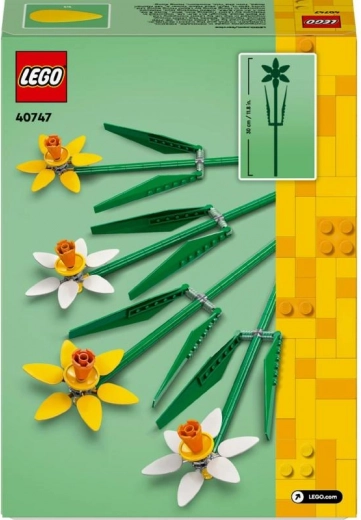 Podaruj kwiaty, które nigdy nie zwiędną. Zestaw LEGO Żonkilki (narcyzy) oferuje cztery pastelowe kwiaty – dwa żółte i dwa białe – z zielonymi łodygami i regulowanymi liśćmi. Idealna dekoracja do wnętrza oraz kreatywny prezent dla dzieci od 8 lat i dorosłych miłośników kwiatów. Można je wyeksponować samodzielnie lub łączyć z innymi kwiatami LEGO, aby stworzyć większy, kolorowy bukiet.