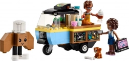 LEGO Friends Mobilna piekarnia zawiera dwie minifigurki, figurkę psa oraz wiele akcesoriów, takich jak rogalik, makaroniki, ciastka i inne narzędzia do wyposażenia piekarni. Te elementy inspirują dzieci do tworzenia własnych historii i wspierają ich kreatywność.