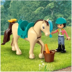 Ten kolorowy zestaw jest idealny dla małych budowniczych od 4 lat. Dzięki klockowi startowemu budowanie jest szybkie i łatwe, więc dzieci szybko rozpoczną zabawę z samochodem z hakiem i przyczepą, dwiema minilaleczkami i dwoma końmi. W lesie czeka powalone drzewo jako przeszkoda skokowa oraz bogaty zestaw akcesoriów do pielęgnacji koni.