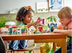 Zbuduj cztery urokliwe budynki w dopasowanych kolorach i z dekoracjami, mniejszą strefę z donicą z kwiatami, ławeczką i fontanną oraz odkrywaj ukryte niespodzianki, które inspirują do wymyślania nowych historii.