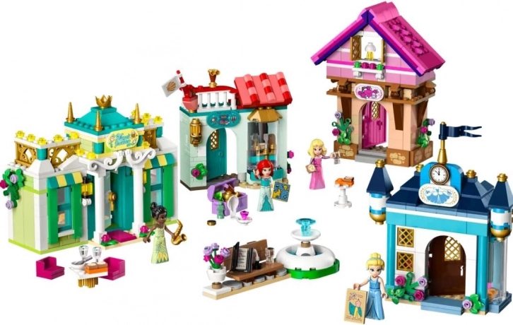 Wejdź na bajkowy targ, gdzie każdy budynek opowiada inną historię. Dzieci zbudują cztery barwne modele z mnóstwem detali – od schowka w restauracji Tiany na pierścionki po skrzynię ze skarbem w sklepie z rzadkościami. Nie zabraknie też mniejszej strefy z donicą z kwiatami, ławeczką i fontanną, która zachęca do tworzenia nowych przygód.