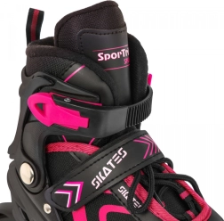 - Pewność i kontrola: hamulec w prawej łyżwie, bezpieczna klamra, rzep i sznurówki.